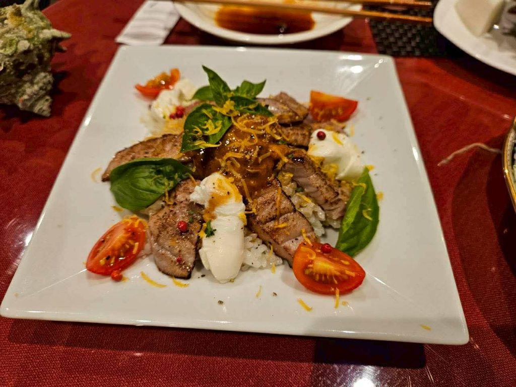 3泊4日の滞在中で、2回ずつ訪れたのが、イタリアンレストランとキャンプ村の食堂だった。イタリアンレストランは、たまたま歩いて見つけて訪ねてみたら、なんと島のカツオや蠣をつかったメニューがあり、さらには調味料もこだわり、とんでもなく美味しい所だと分かった。一口食べ始めて感動し、食事を終える頃に、翌日の予約を入れていたのがこのレストラン。特にぶどうジュースが、皮そのものが入って、味もつぶつぶの食感も最高でした。限られた時間の中で、同じ店に行きたいと思えることは、旅行中のささやかな幸せです。